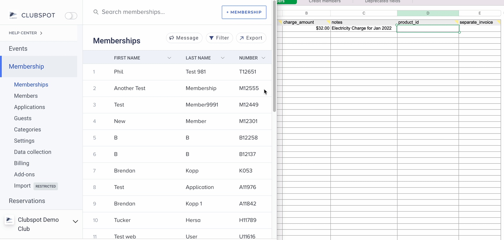 Once you have these details, you can create a batch file to upload in Clubspot. Processing this batch file will allow you to charge all of the memberships in bulk.