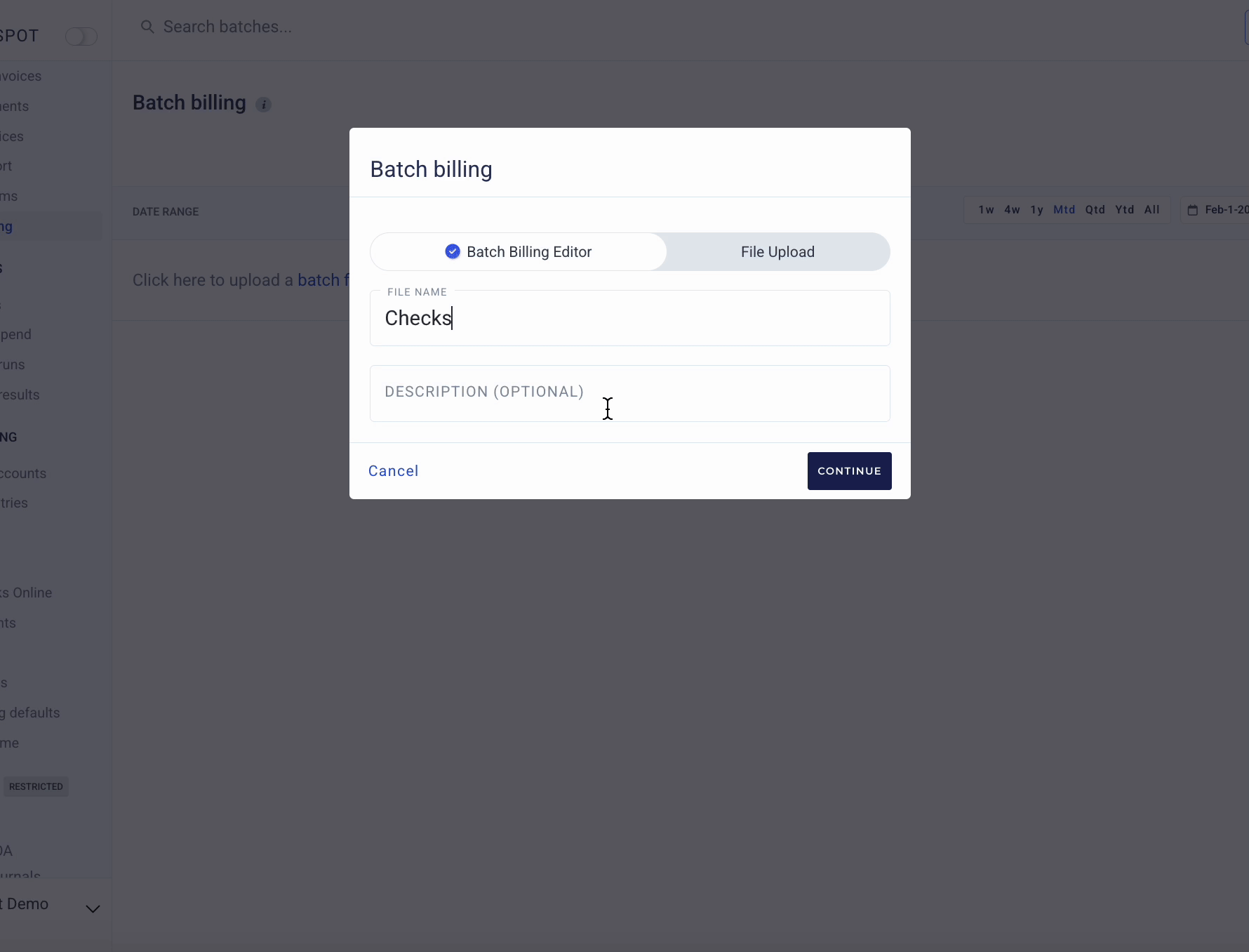 You can also speed things up by recording a batch of offline payments (eg. a long list of checks that you deposited at the bank). Upload them under the Reporting > Batch Billing tab with our Batch Billing Editor.