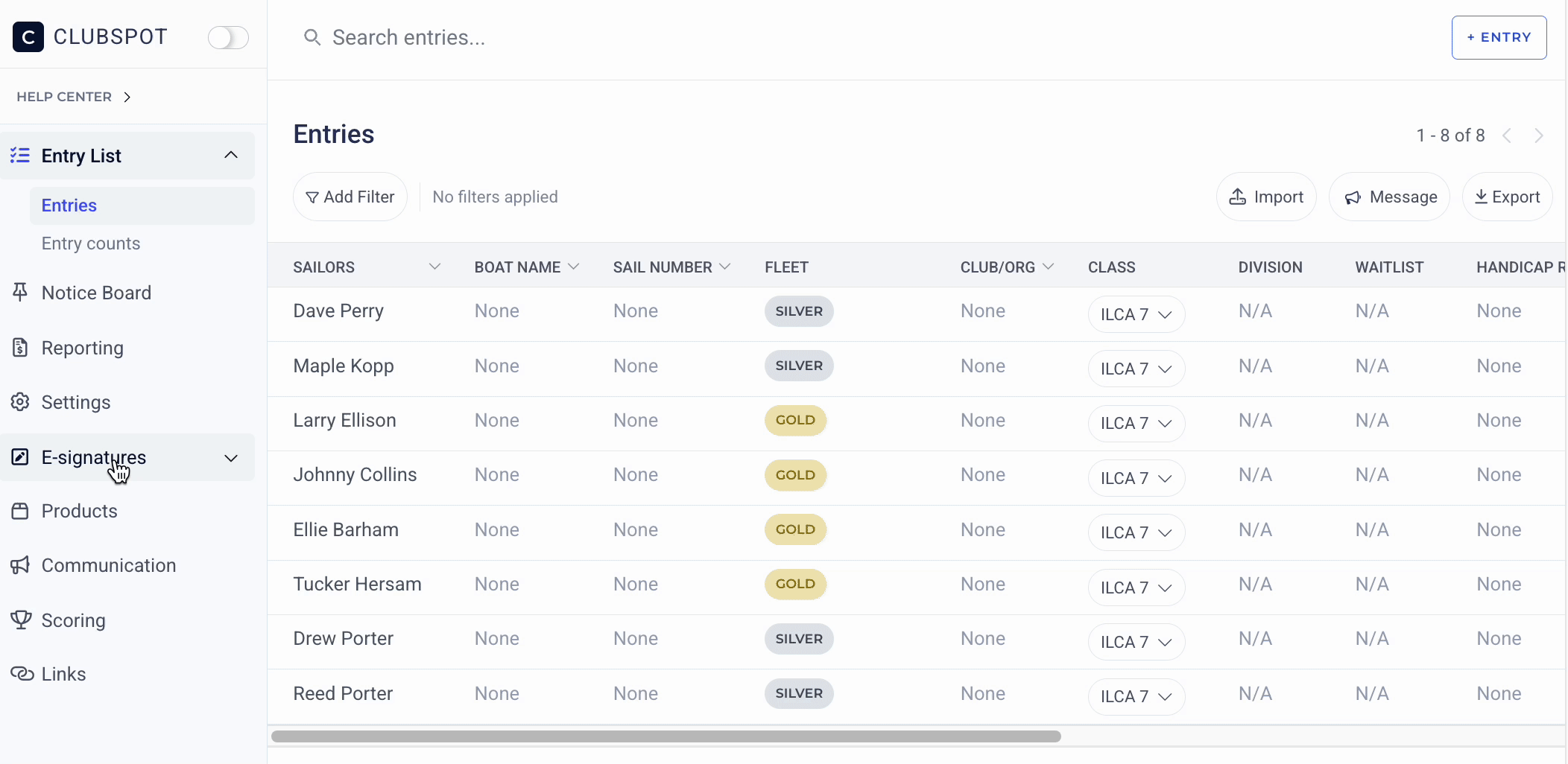 Clubspot makes it easy to collect legally-binding online signatures from participants and/or members. Please note that we charge a small fee for each waiver we send on the club’s behalf. You can see our pricing page here.