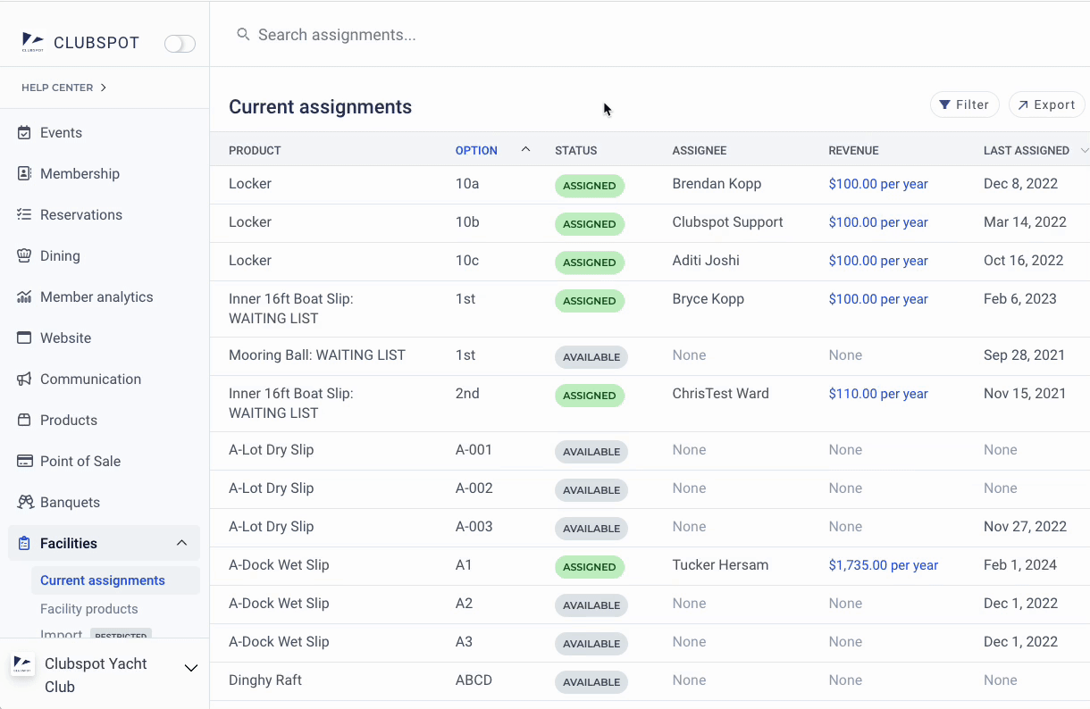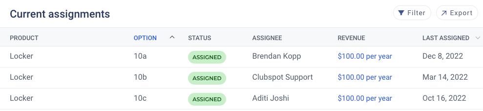Navigate to the Facilities > Current Assignments. This is where you can view your assignments and prices. It may be helpful to filter to a specific assignment product to pull up the assignments you are looking for.