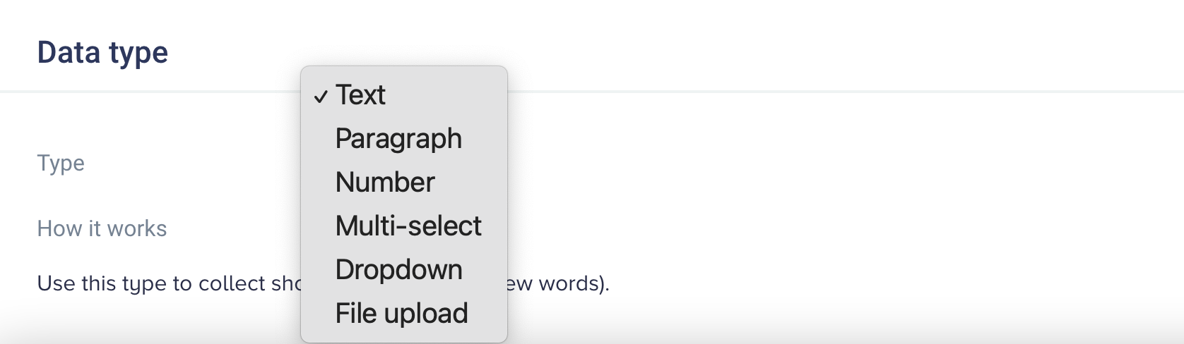 Change the data type and options for dropdown/multi-select fields under the “Data type” header