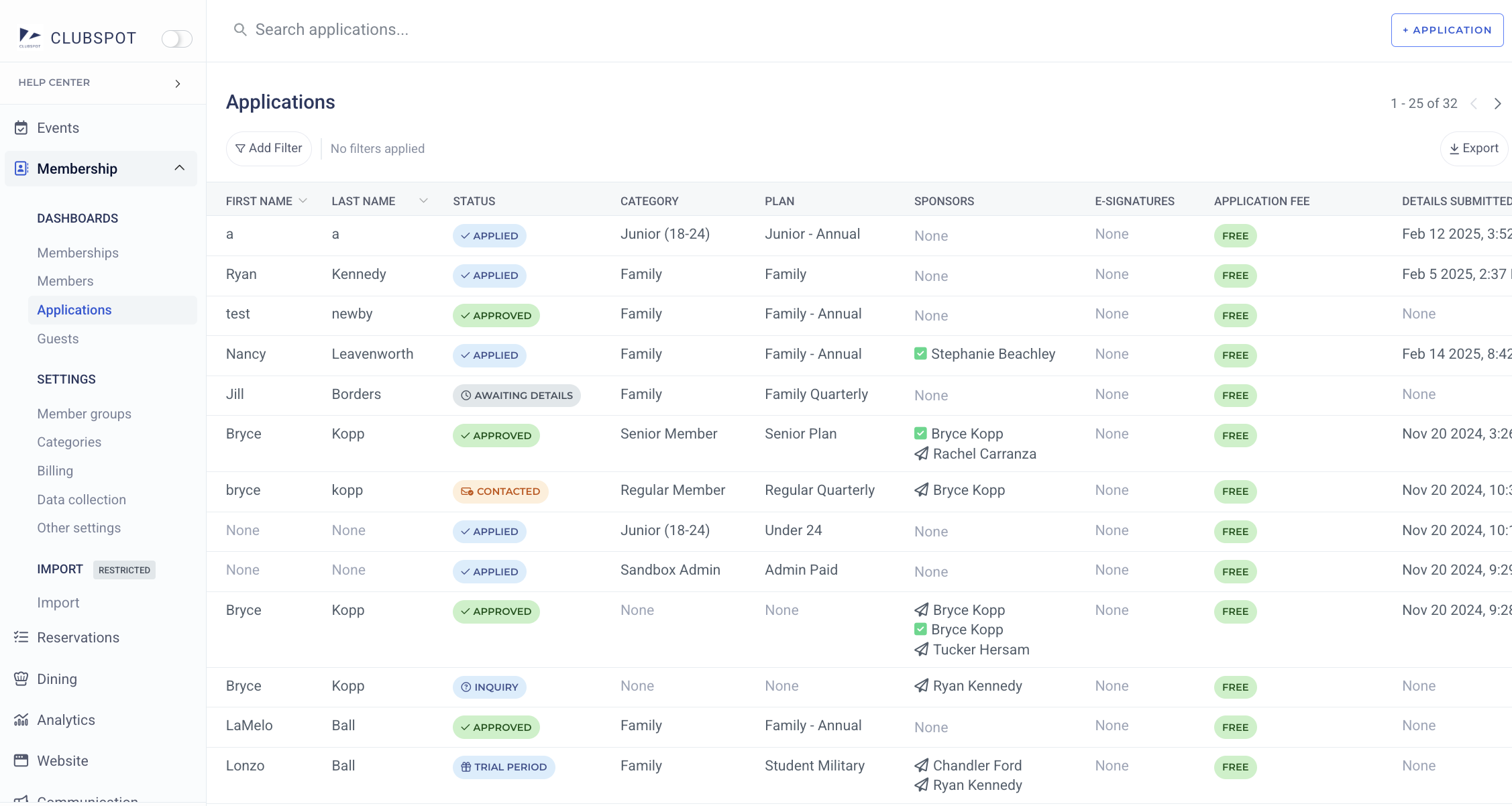 You can view all Membership Applications by clicking on the Membership tab > Applications.