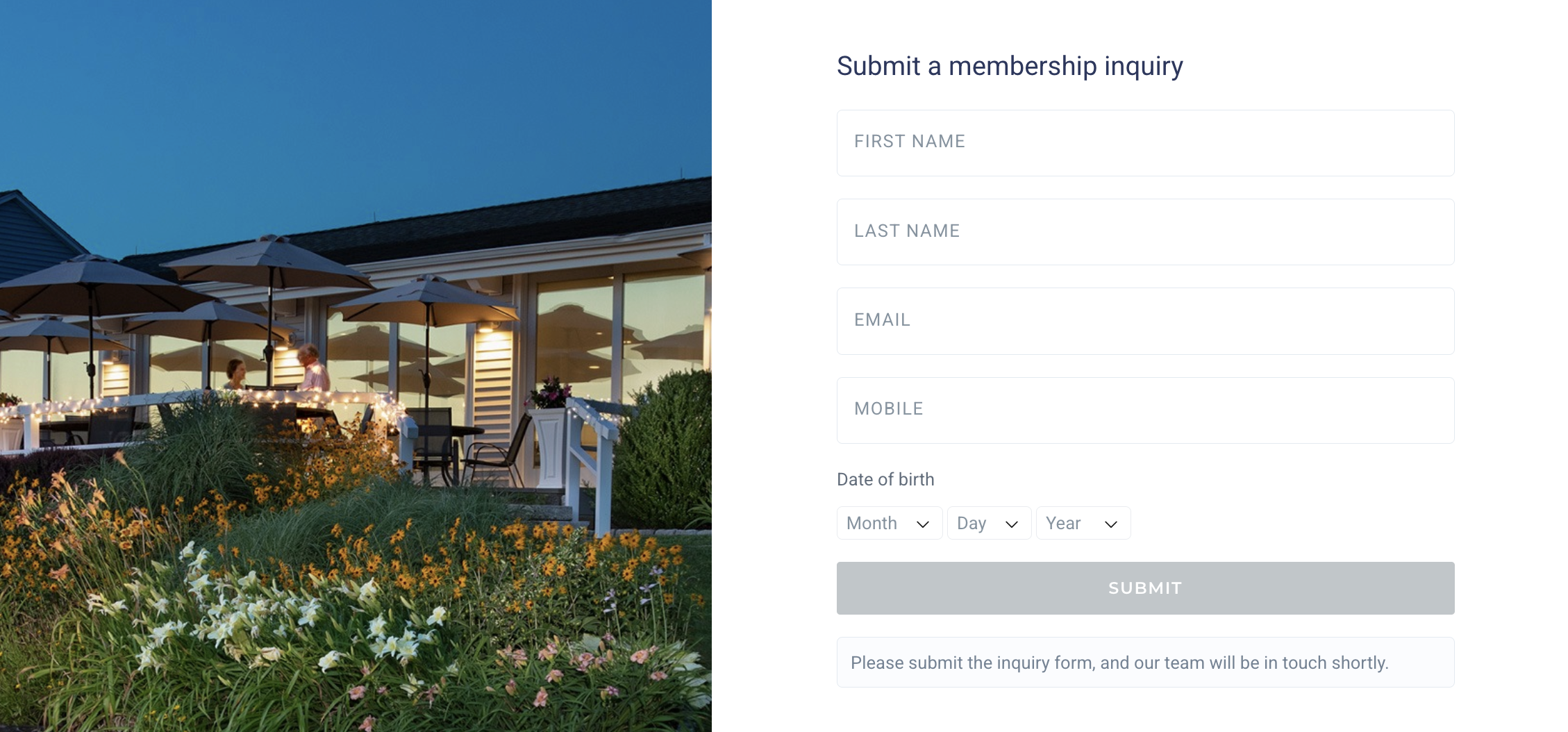 The membership inquiry form is used to capture initial interest from a prospective member, before sharing an online membership application.