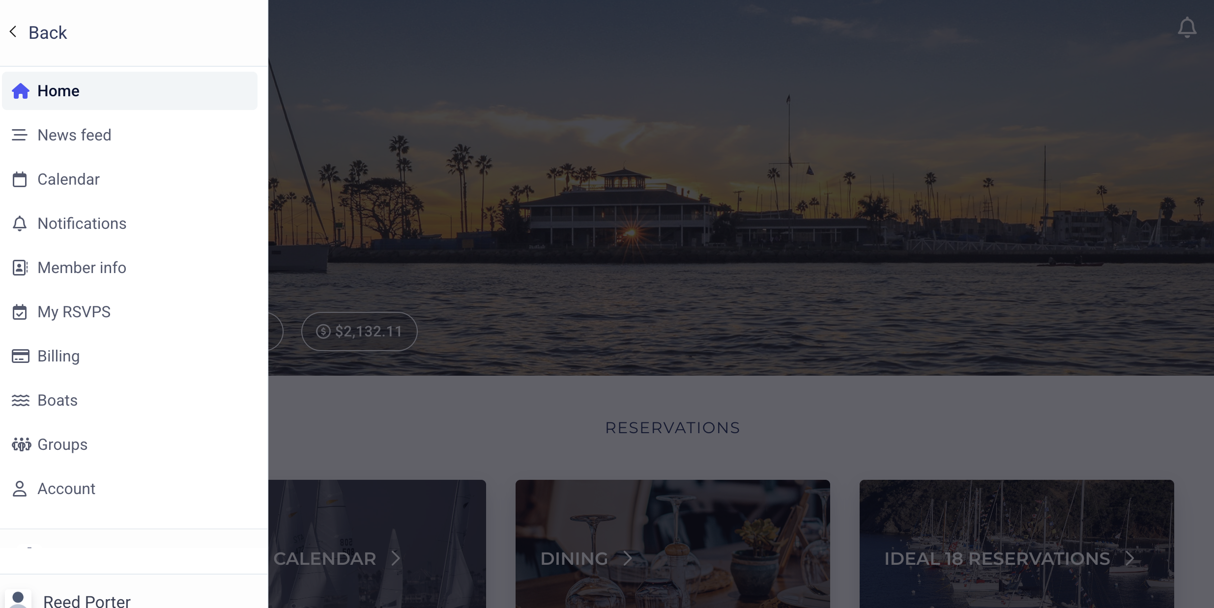 To update your boat information in the member portal, click into the sidebar, and go to boats.