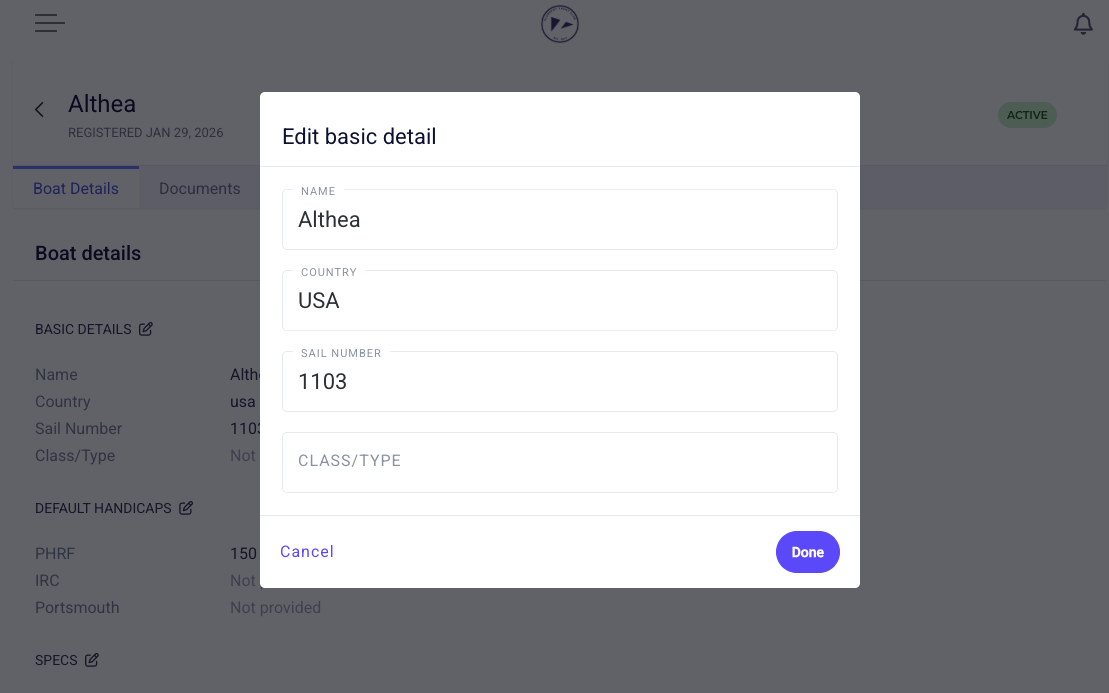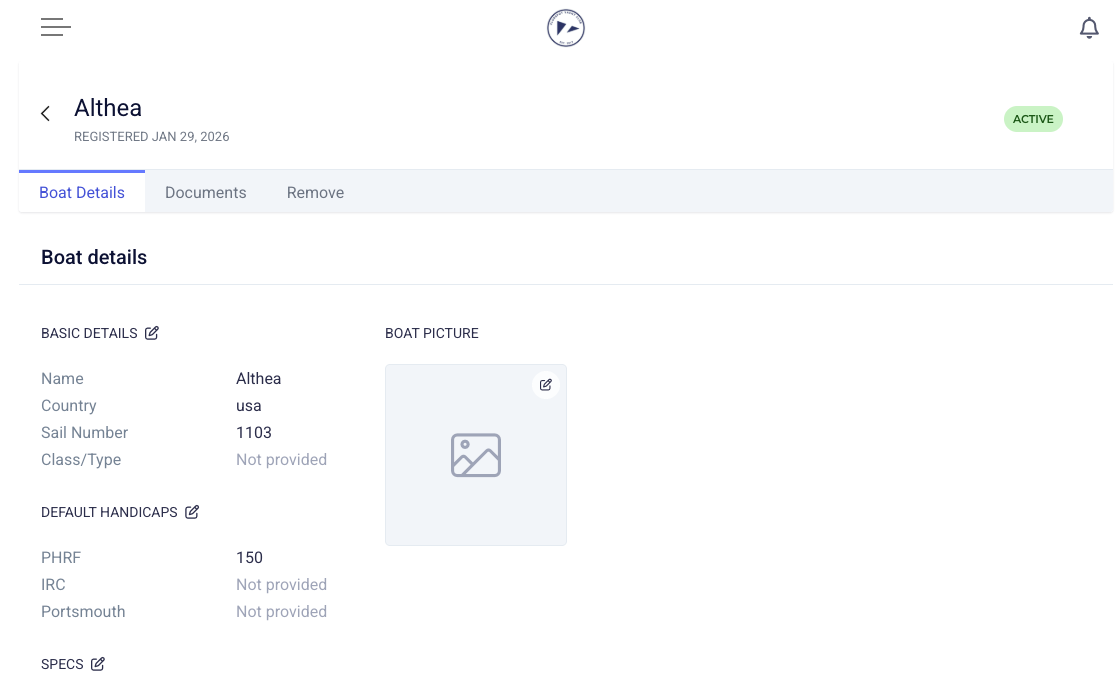 To update existing boat information, click into the boat, and click the pen and paper icon on the section that you wish to update.