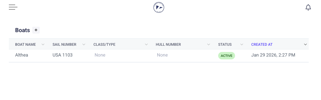This will bring you to any boats that you have on your profile. You can add another boat by clicking the "+" symbol.