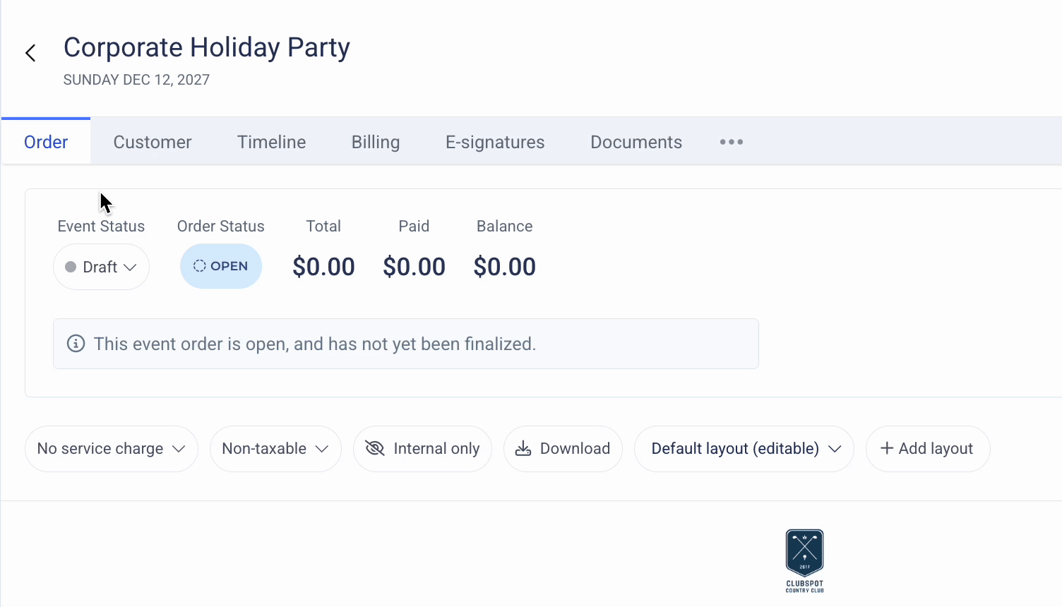 Event finalization now takes place on the main Order page. Once you're ready to finalize, follow the prompt to review all of your charges. Please note that we now default the finalization date to that of the event to assist in accurate revenue recognition timing. This date is customizable if necessary, but cannot be dated in the future.