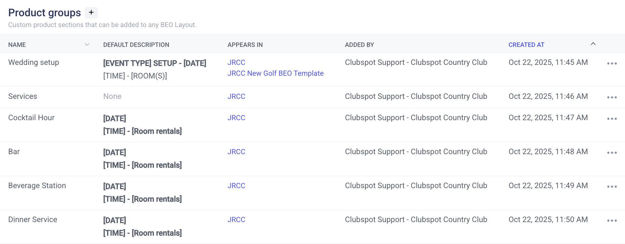 The product group dashboard now visibly displays the description used in each element to differentiate their text without clicking into each row. Hyperlinks on the group and content template dashboards allow you to quickly jump to each of the BEO Layouts where they are being used.