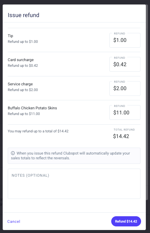 Unlike a refund for a balance payment, refunding a direct purchase will ask you to indicate which items on that direct purchase to refund.
