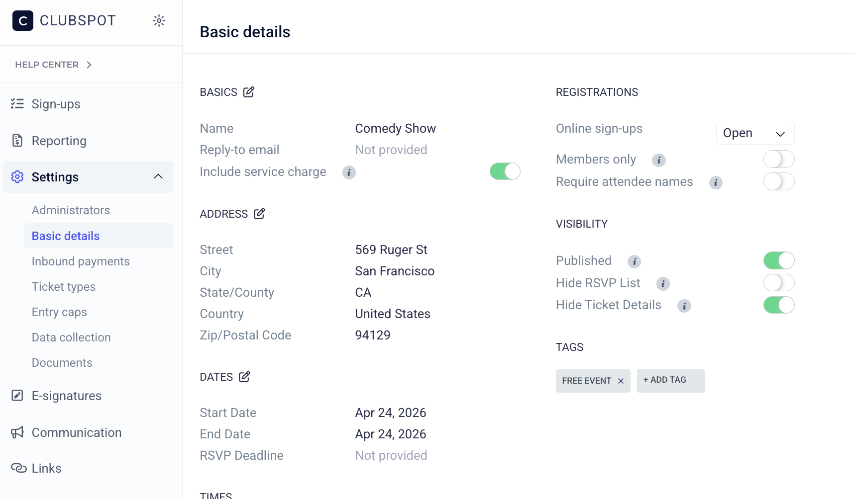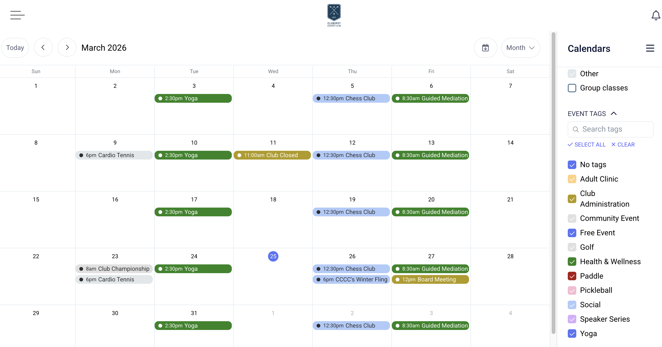 Event Tags allow you to color-code calendar entries for your club calendar and enable filtering by those tags.